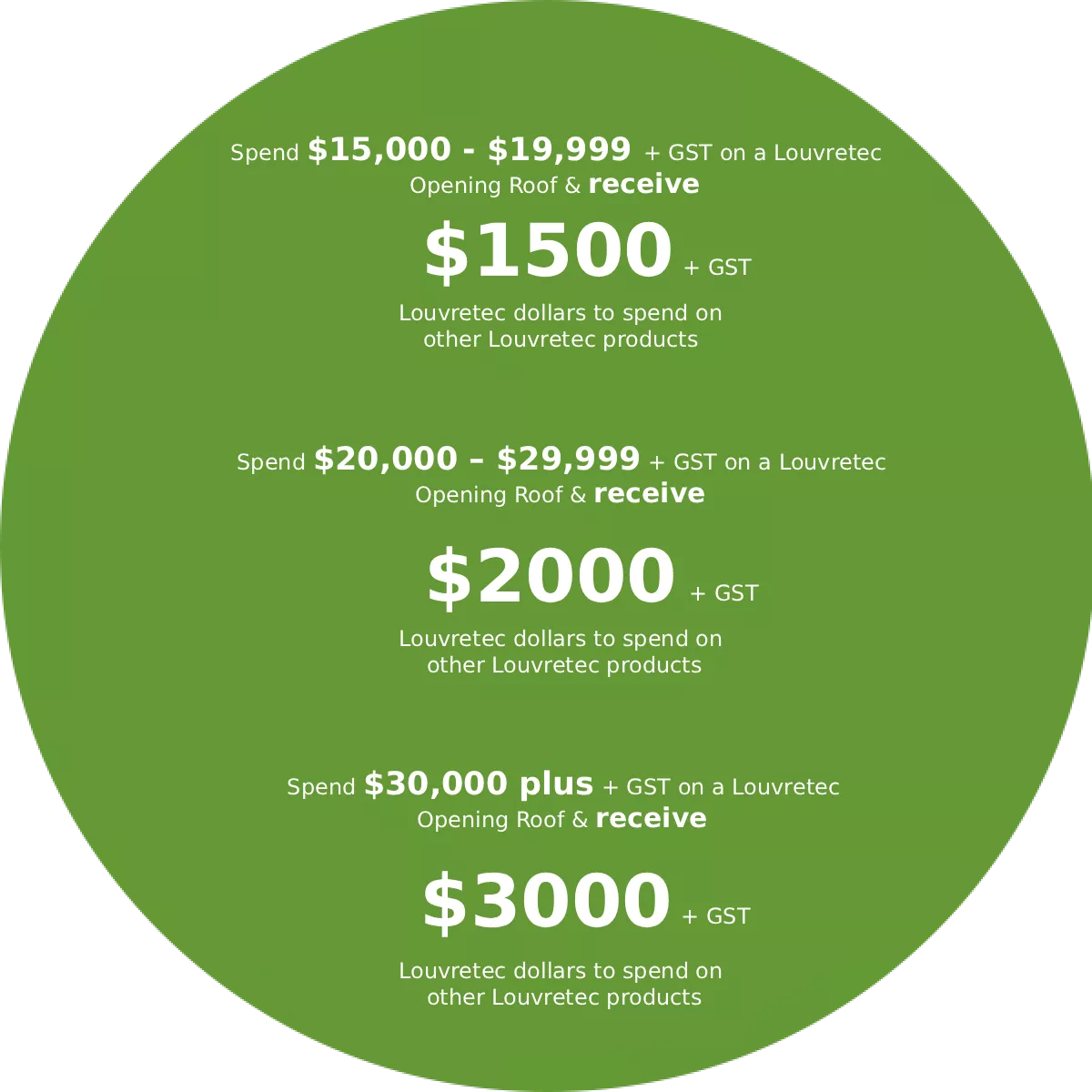 Spend $15,000 - $19,999 + GST on a Louvretec Opening Roof & receive